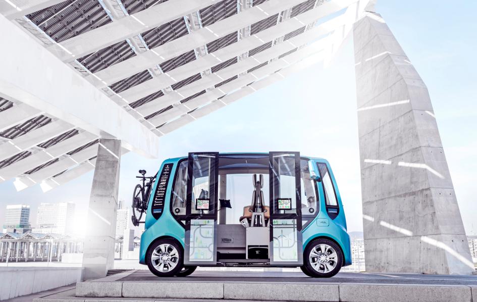 The concept has a length of 3.7 meters, but offers enough space for the driver and three passengers and an unfolded stroller or cart. The height of 2.2 meters and makes installation easy and space-saving upright seats with a specially designed security system TRW, a top provider in the safety of the vehicle industry. In addition, the fashionable style of specialists Hornschuch and special textiles Strähle & Hess were delivered. In the cabin, all passengers enjoy amenities like a coffee maker, a refrigerator for drinks and unlimited connectivity for entertainment purposes, or they can even while working on the move.